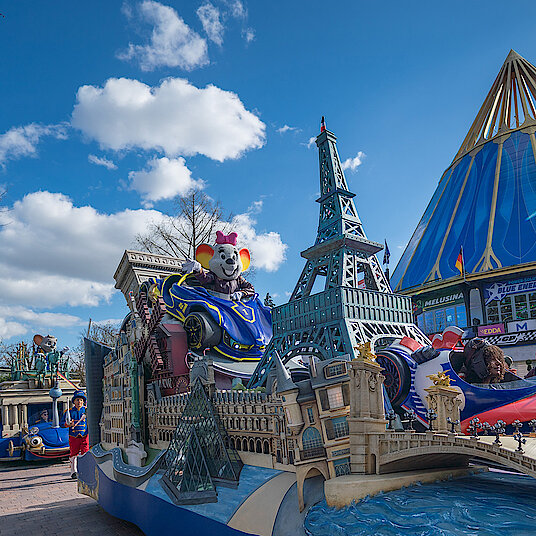 Parades, interactive shows and meet & greets – you can already meet Ed Euromaus & Edda Euromausi at numerous locations in the Europa-Park Resort and share adventures with them and your whole family. GRAND PRIX EDventure, a new interactive family attraction based on the feature film, is currently being created until 2025: the immersive 3D dark ride offers fast-paced fun on a new level! Accompany Ed & Edda on their adventurous journey across Europe and become part of their racing crew. State-of-the-art multimedia integration and a lovingly themed design will transport you to the heart of the feature film GRAND PRIX OF EUROPE.